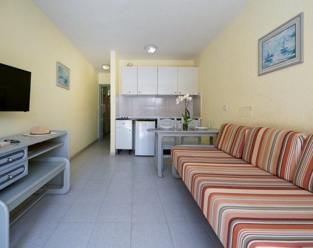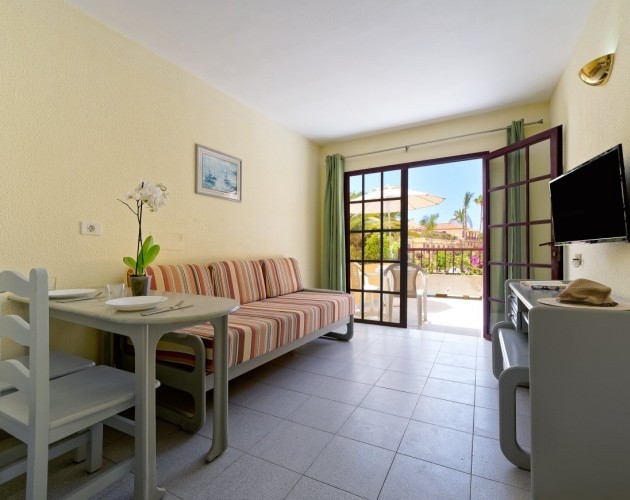 In unserer Hotelanlage Bungalows Maspalomas Oasis Club haben wir 16 Standard-Bungalows mit 40 Quadratmetern, von denen 9 zur Terrasse gehören. Alle unsere Bungalows haben eine ausgestattete Küche, ein separates Schlafzimmer, ein Wohnzimmer mit ausziehbarem Schlafsofa für zwei Personen, ein kostenloses Kinderbett und ein Badezimmer mit Badewanne und Haartrockner.